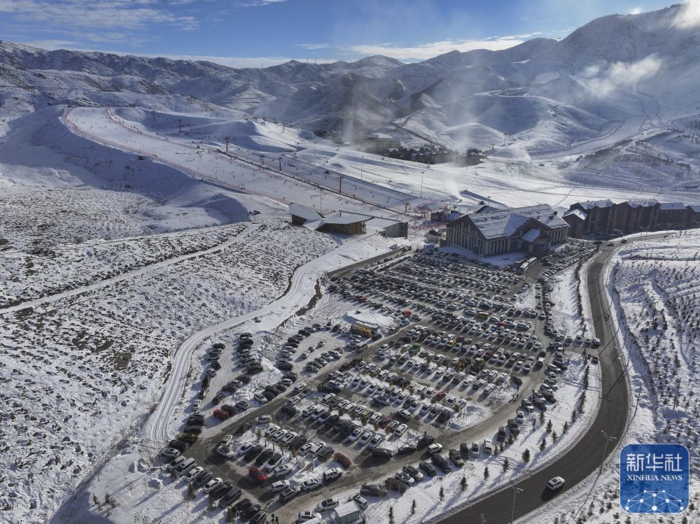 ↑ 这是拍摄的新疆阿勒泰将军山国际滑雪度假区(无人机照片)。 新华社发(明庭俊杰摄)