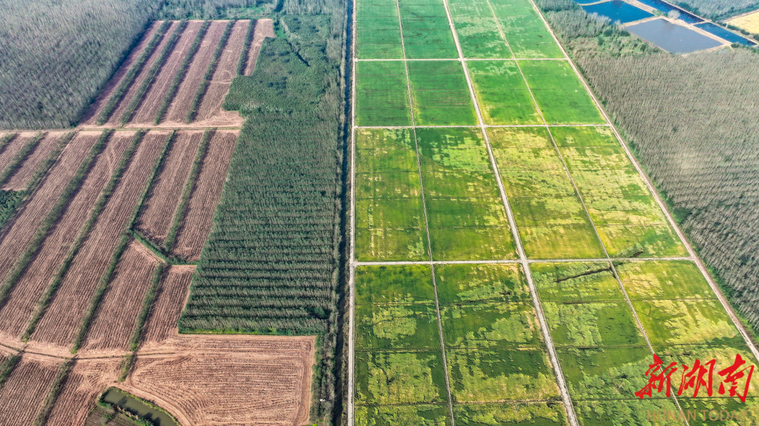 澧县七里湖,一边是杨树林,一边是刚置换的耕地