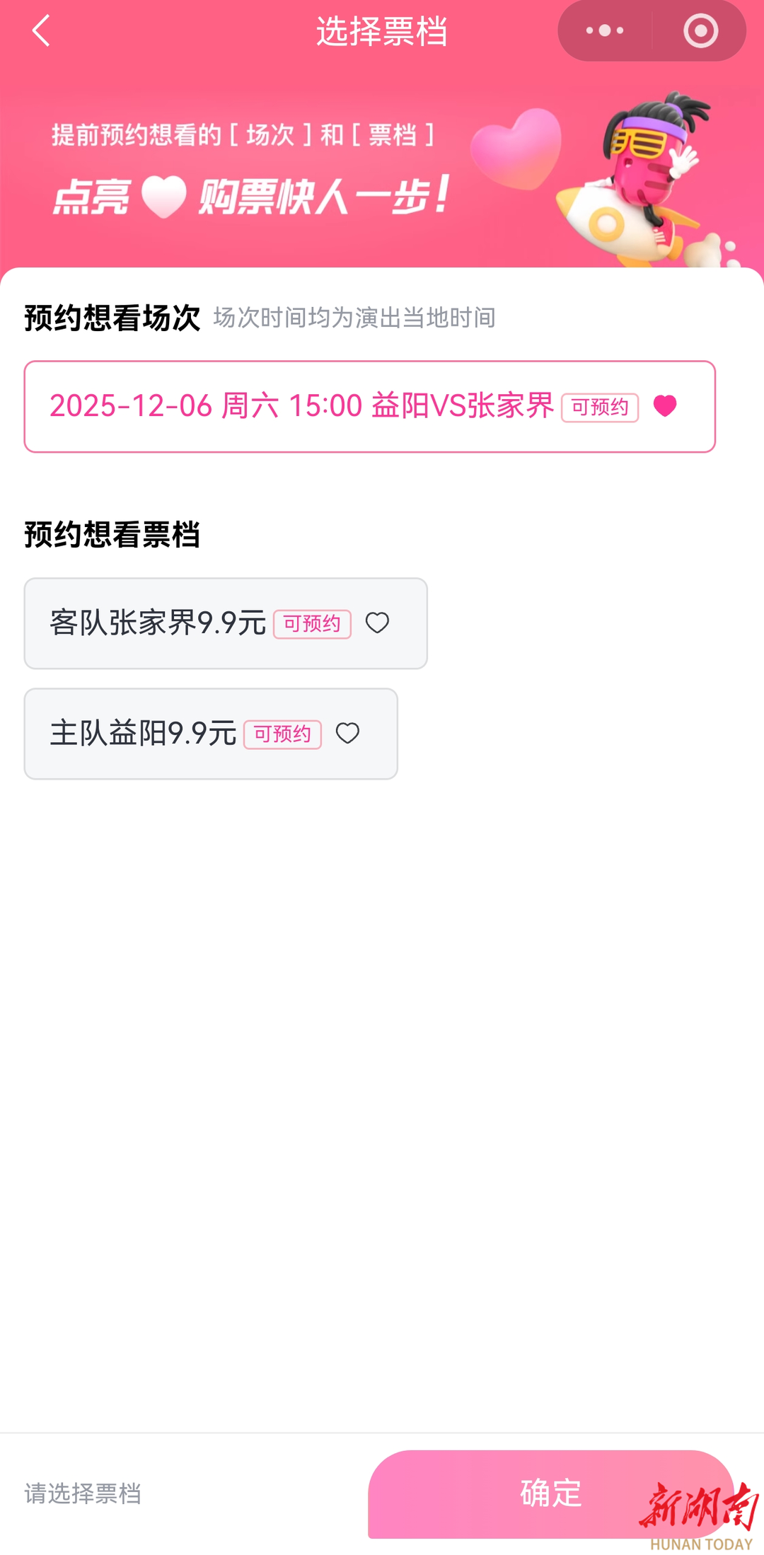 12月6日(本周六)15:00,“湘超”将迎来最后一轮常规赛的角逐,益阳主场迎战张家界,购票预约通道已开启。