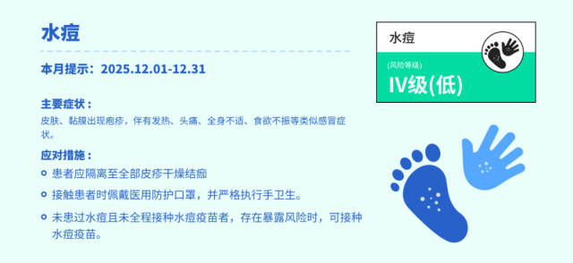 与此同时,诺如病毒肠炎风险维持中等水平,水痘与新冠病毒感染风险相对较低。湖南疾控提醒公众,当前正值流感高发季节,务必做好流感疫苗接种和日常个人防护,特别关注老人、儿童等易感人群,共同应对冬季传染病挑战。