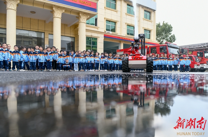 12月2日,小朋友在参观消防灭火机器人演示。当天,道县消防救援大队组织幼儿园小朋友走进消防营区,通过绳索攀爬、水枪操作等互动体验,增强孩子们的安全意识和自救能力。蒋克青 文甜 摄影报道(湖南图片库)