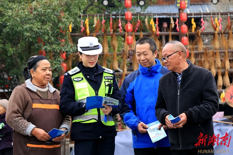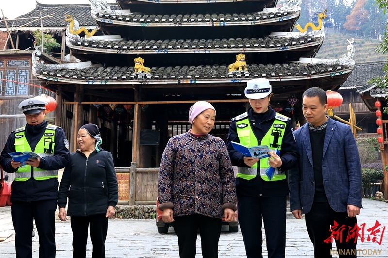 12月2日,通道侗族自治县坪坦乡皇都村,交警向村民讲解交通安全知识。当天是第十四个“全国交通安全日”,该县交警结合农村道路特点及常见风险,通过通俗易懂的语言和典型案例,普及安全出行常识,引导群众自觉遵守交通法规,筑牢农村道路交通安全防线。石猛雷 摄(湖南图片库)