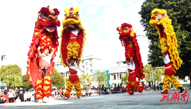 12月2日,江永县潇浦镇允山中心小学,学生在表演舞狮。近年来,该县部分中小学利用课后服务时间开设传统舞龙舞狮课程,让学生在强健体魄的同时,感受中华优秀传统文化的魅力。田如瑞 摄(湖南图片库)