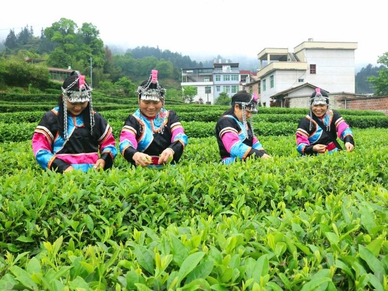 畲族姑娘们背上竹篓,唱着山歌采摘茶叶。(通讯员供图)