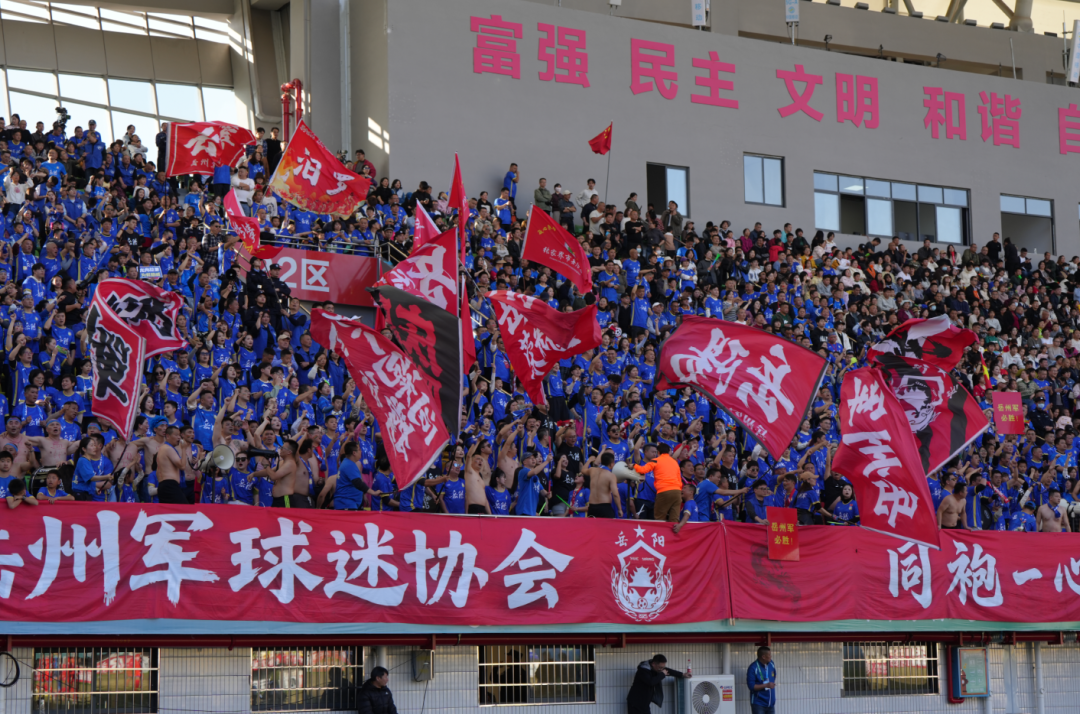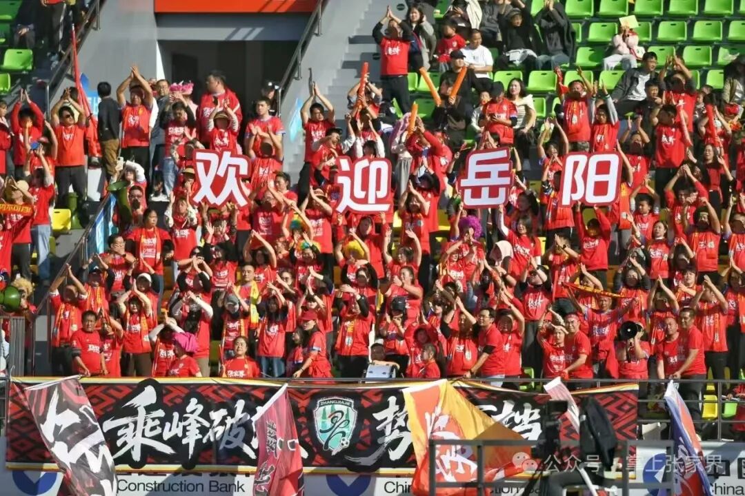 在那里,千余名岳阳远征球迷身着统一服装,他们的助威声整齐划一、训练有素,他们的忠诚与热情,通过大屏幕传递给了全场观众。
