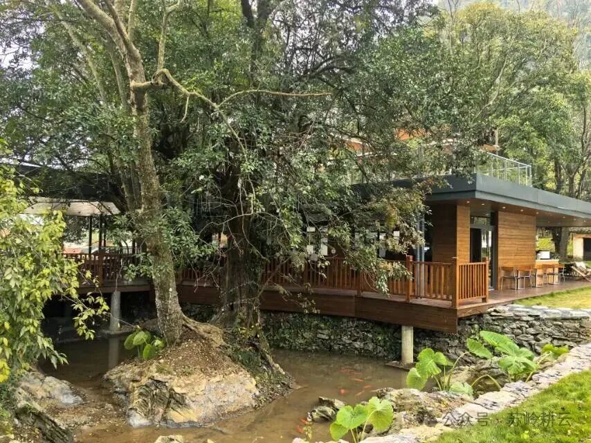 生态是解锁可岩可田最核心的密码。民宿建在青山下、田园里,规划建设时餐厅休闲区域原有的树木都完好的保存下来,成为整个建筑群中有机的一部分,也是风景的一部分。甚至连这里原有的两座小小的“土气十足”的“土地庙”,建设时也予以了保留,以体现对原生态环境的尊重。坐在开放式的木质地板餐厅休闲区,头顶绿树掩映、草地上传来窑烤面包醇厚的麦香,手上一杯现磨的咖啡热气袅袅、香味四溢……眼前,名叫“警长”的黑猫在我们面前,敏捷熟练的爬上树去……此时,似乎世间所有美好都与自己息息相关,遗失已久的从容和安心都落在了眼前的点点滴滴、一景一物。