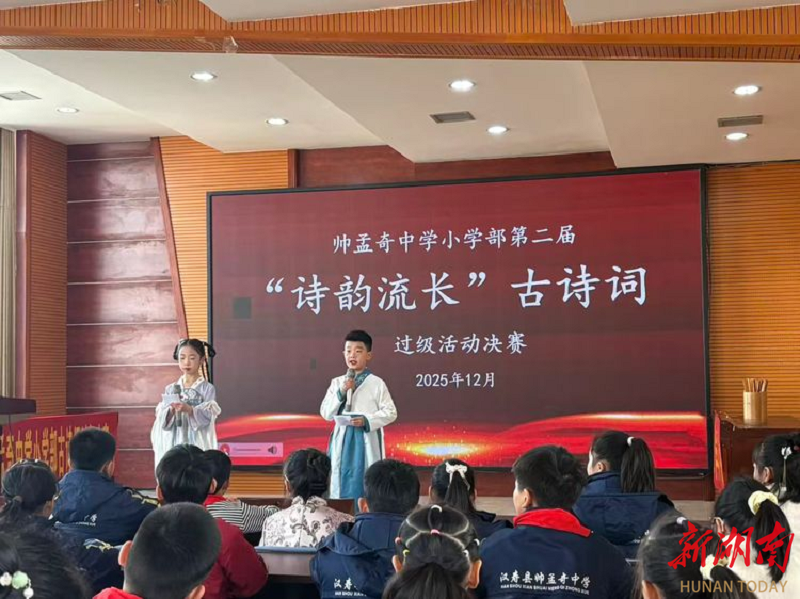 科教新报·新湖南客户端讯(通讯员 张萌萌)为传承中华优秀传统文化,丰富校园文化生活,汉寿县帅孟奇中学小学部于11月下旬至12月上旬举办第二届“诗韵流长”古诗词过级活动。活动以“以赛促学、以赛促教”为核心理念,引导学生深耕古诗词天地,感受汉语之美,提升审美情趣与人文素养,进一步筑牢文化自信根基。