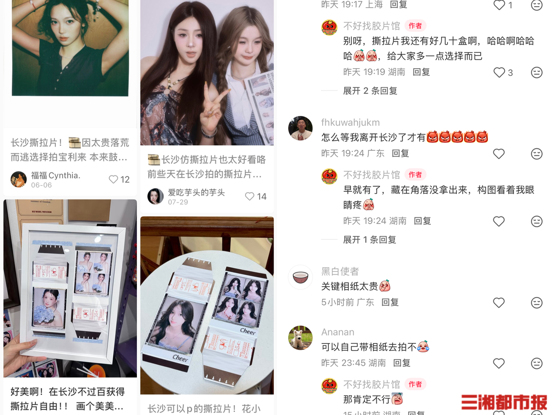 “我要为这个来长沙”“撕拉片味太正了”“直接省了好几百,性价比超高”……12月3日,记者浏览社交平台时发现,长沙名为不好找胶片馆的照相馆推出“撕拉片最强平替”,吸引了不少撕拉片爱好者,笔记互动量过千。