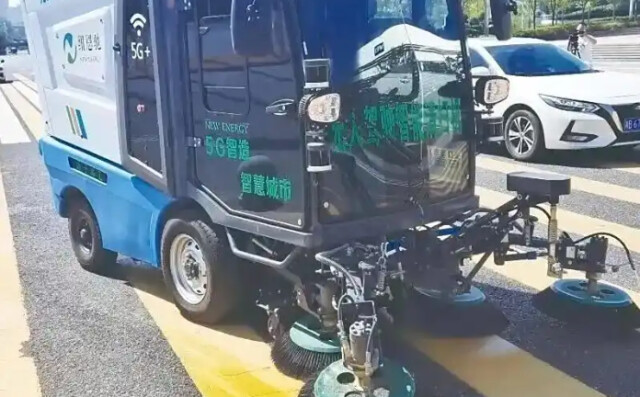 同样在株洲,汽车博览园动力谷大道,一辆无人驾驶智能清扫机正按照固定路线进行环卫作业,路边的落叶、纸屑等细小垃圾都被精准清理干净。汽车博览园30多万平方米的作业面里,3台无人驾驶智能清扫机同时运作,替代了30余名环卫工人作业。这是湖南纽恩驰新能源车辆有限公司自主研发的北斗+车路云智慧环卫综合监管解决方案应用场景。