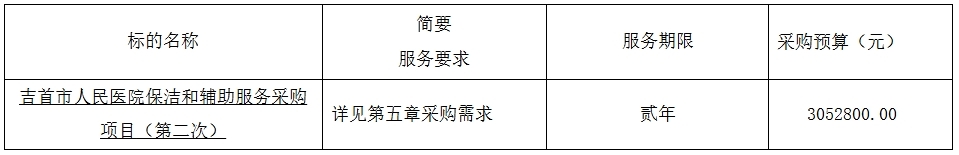 1、采购项目名称:吉首市人民医院保洁和辅助服务采购项目(第二次)