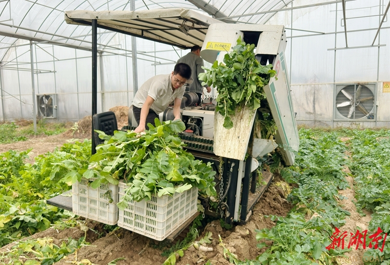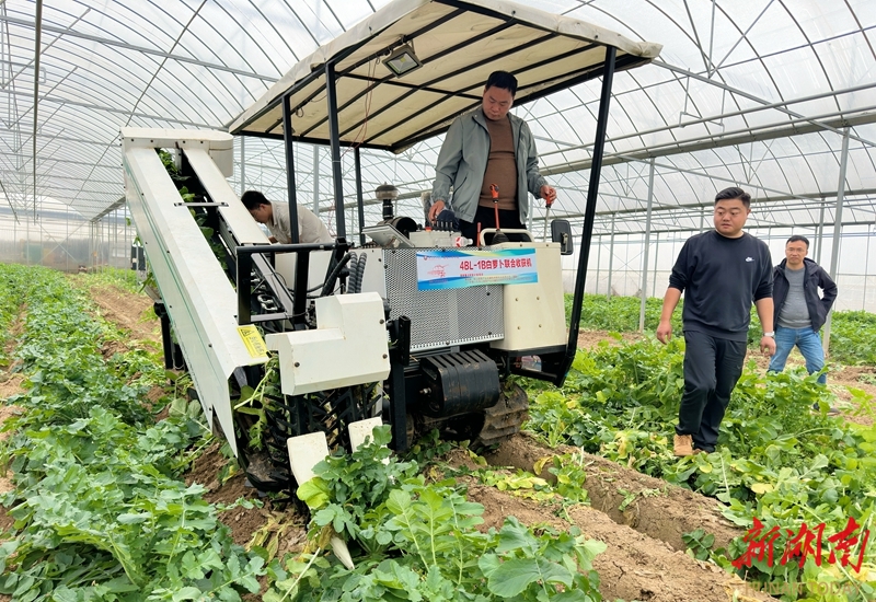 12月4日,浏阳市沙市镇沙市村蔬菜大棚,由湖南农业大学自主研发的白萝卜收获机正在进行机械化收获作业。这是我国首台适合南方地区作业的白萝卜收获机,整机宽2米,长4米多,操作简单灵活,适合南方丘陵地区小地块作业。相较传统人工方式,单台设备作业效率相当于10名劳动力,可大幅降低人工投入。湖南日报全媒体记者 徐行 胡盼盼 摄影报道