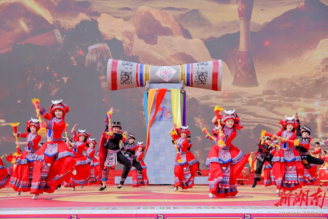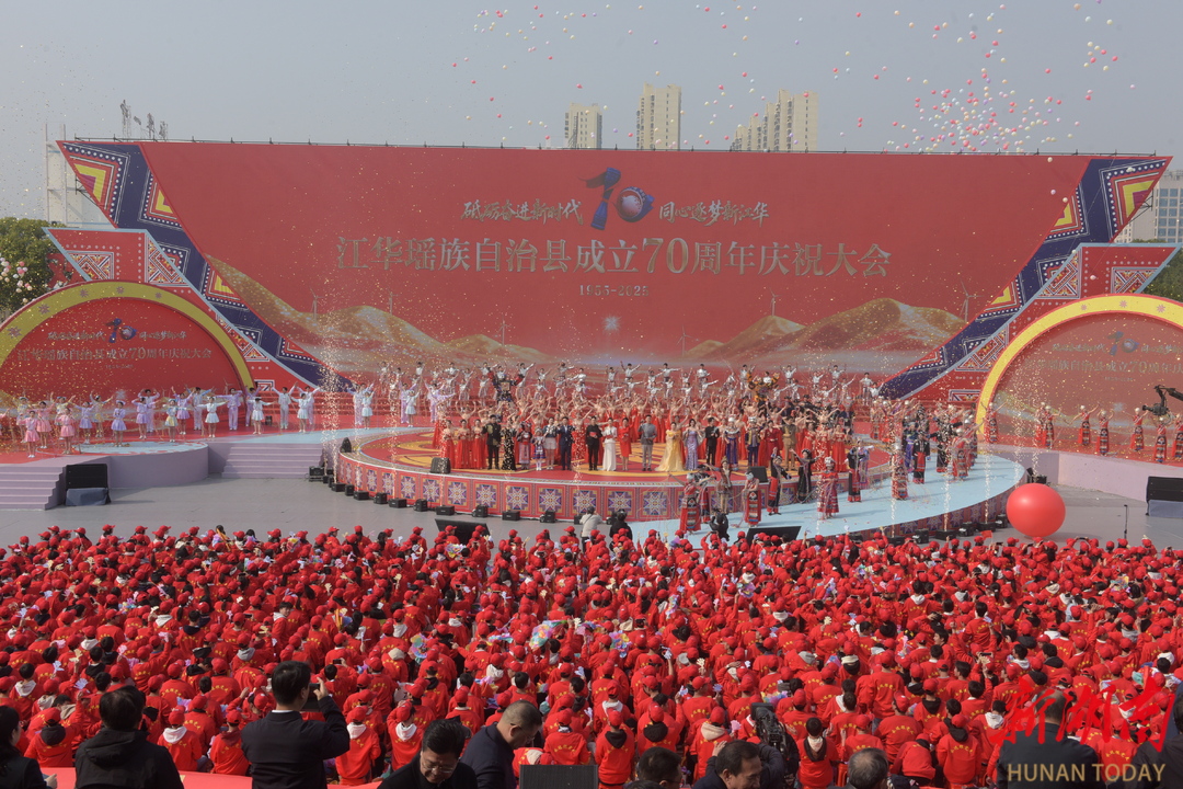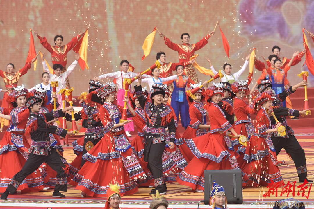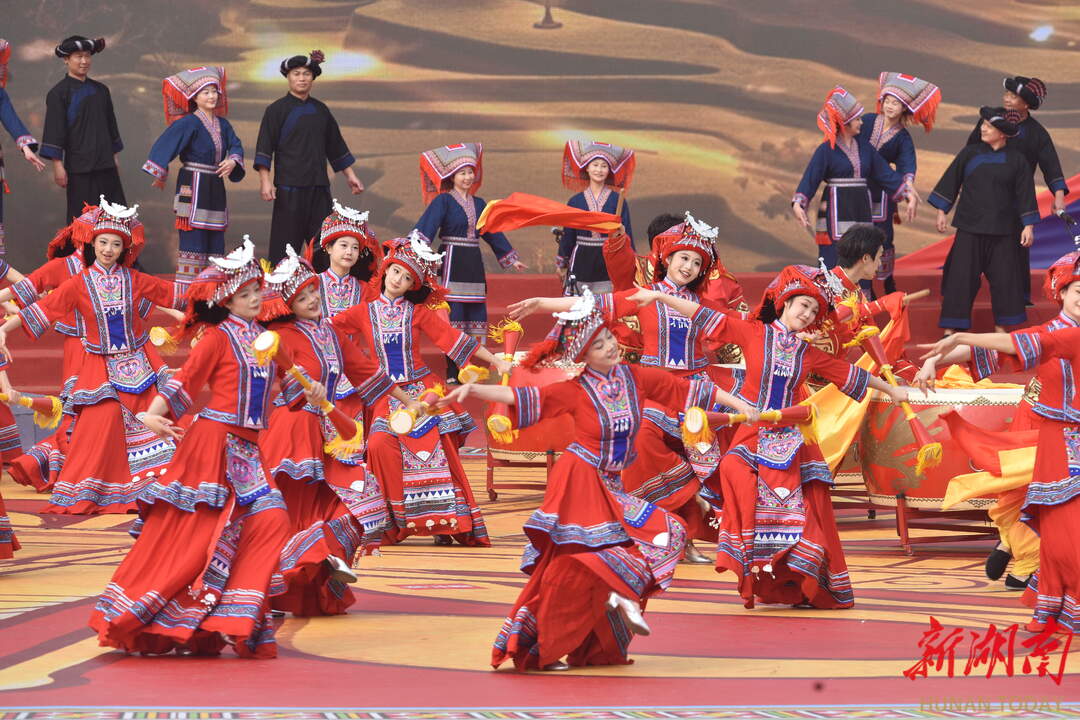 12月4日,演员在表演文艺节目。当天,江华瑶族自治县成立70周年大会举行,“砥砺奋进新时代,同心逐梦新江华”主题文艺展演精彩上演。黄春涛 摄(湖南图片库)
