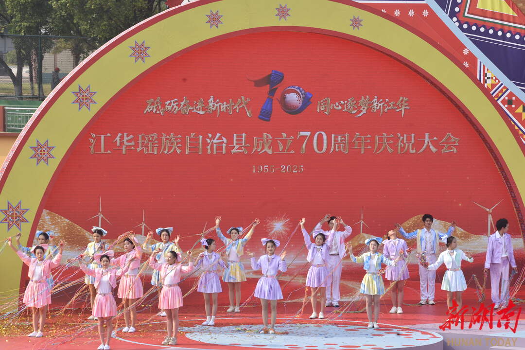 12月4日,演员在表演文艺节目。当天,江华瑶族自治县成立70周年大会举行,“砥砺奋进新时代,同心逐梦新江华”主题文艺展演精彩上演。杨永玲 摄(湖南图片库)