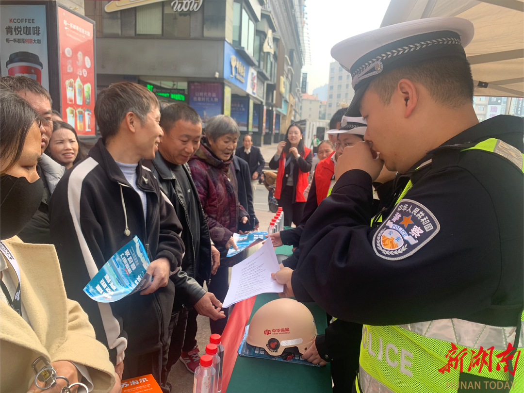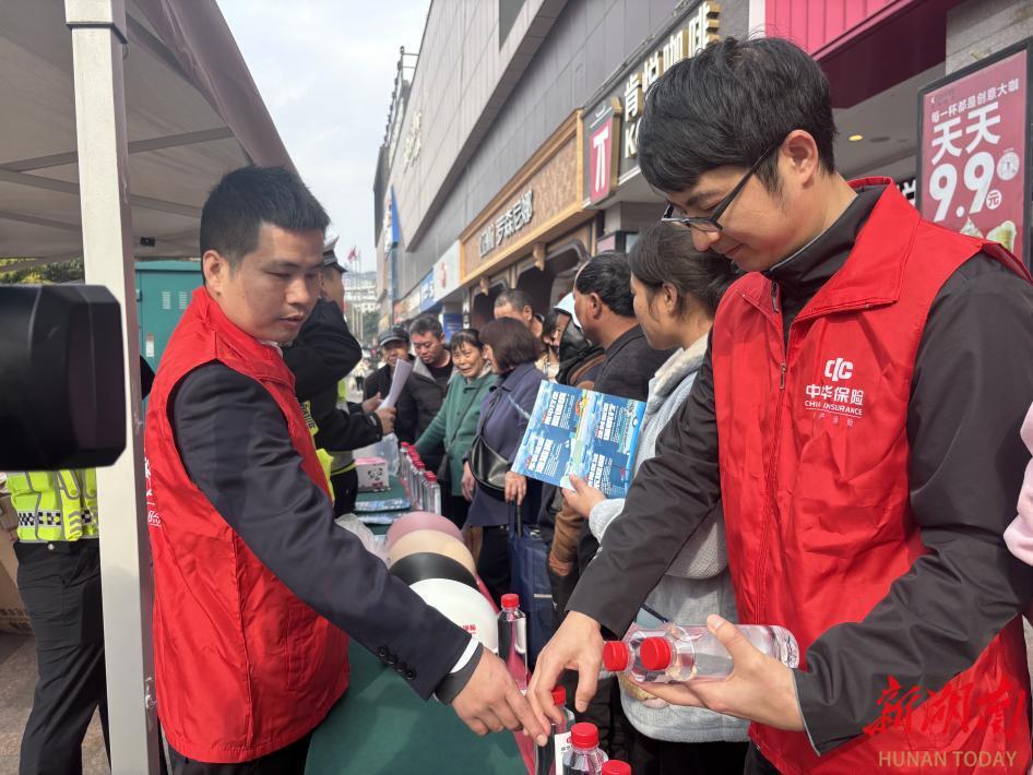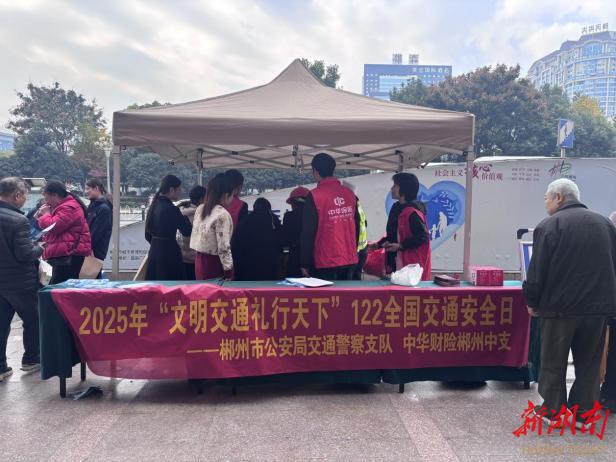 湖南日报·新湖南客户端12月5日讯(通讯员 段雯)12月2日全国“交通安全日”当天,中华财险郴州中心支公司与郴州市交警支队二大队于五岭广场超市入口处联合设立宣传点位,开展了以“送头盔、保安全”为主题的交通安全宣传教育活动。