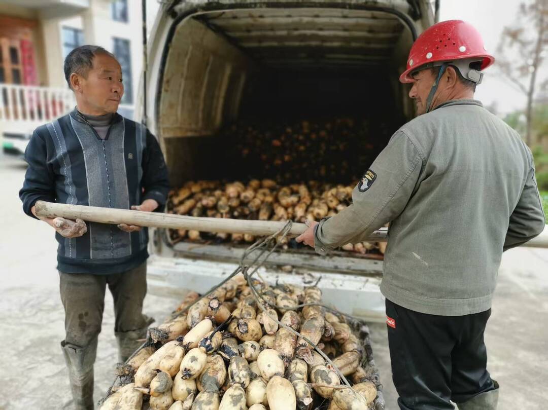 岸边,批发商吴云贵一边称藕装车,一边说:“肖军的藕,新鲜干净,人也实在,从不掺次货,在广东那边名声很好。”
