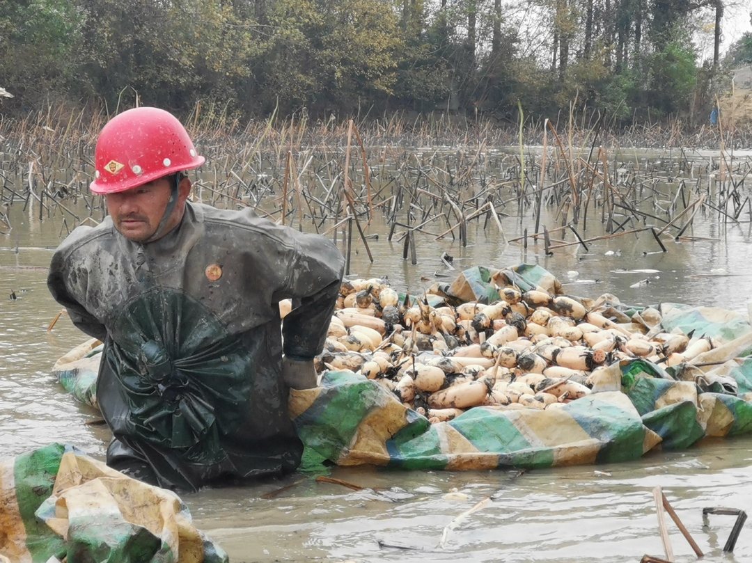 说起种藕,他抬眼望向枯荷,目光却仿佛落在盛夏的绿意里。“每年三月,得到武汉买回藕种,一枝枝插进泥里,一亩地得五百斤种藕。”他顿了顿,接着说,“藕啊,春夏时节都是‘娇宝宝’,半点不能马虎。”