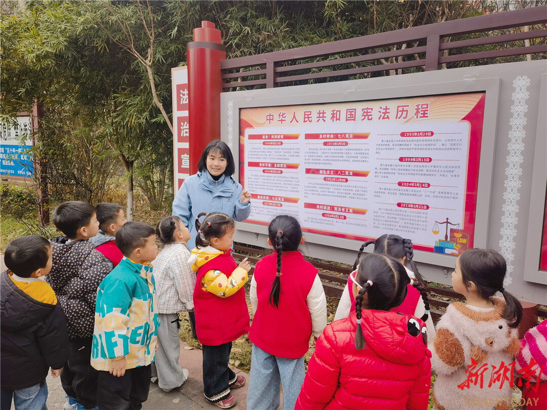 新湖南客户端12月5日讯(通讯员 王芙洲 杨繁)12月4日,国家宪法日,湘西土家族苗族自治州幼儿园高新区园内一派朝气蓬勃的景象。作为湖南省基础教育改革重点项目《体教融合视域下幼儿园生态远足园本课程实践研究》的实践内容,项目组带领孩子们开展了一场别开生面的“法润童心”主题生态远足。