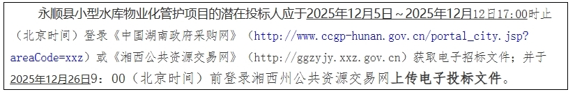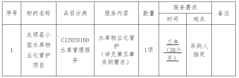 1、采购项目名称:永顺县小型水库物业化管护项目