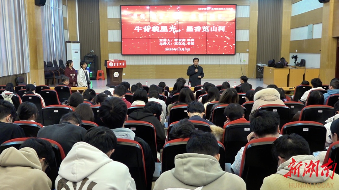 湖南日报·新湖南客户端12月5日讯(通讯员 刘张井 记者 杨元崇)12月2日,吉首大学“药好青春”立人教育讲座第33期,迎来校友符云亮温情开讲。这位从湘西土家族苗族自治州走出的央视导演以“牛背载星光 墨香览山河”为题,分享从放牛娃到多次走进人民大会堂领奖的励志人生,用出版5部文学著作、50余部央视播出作品、赋能40余个地方品牌的骄人成绩,为学弟学妹带来一堂饱含赤子情怀的职业成长课。