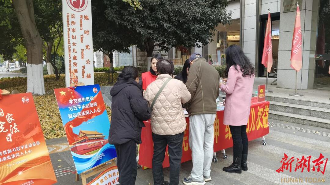 湖南日报·新湖南客户端12月5日讯(记者 王晗 通讯员 晏婧)为认真实施法治宣传教育,推动宪法精神深入人心,切实维护妇女儿童合法权益,12月5日,长沙市妇联组织开展了“弘扬宪法精神 维护妇儿权益”主题普法宣传活动。