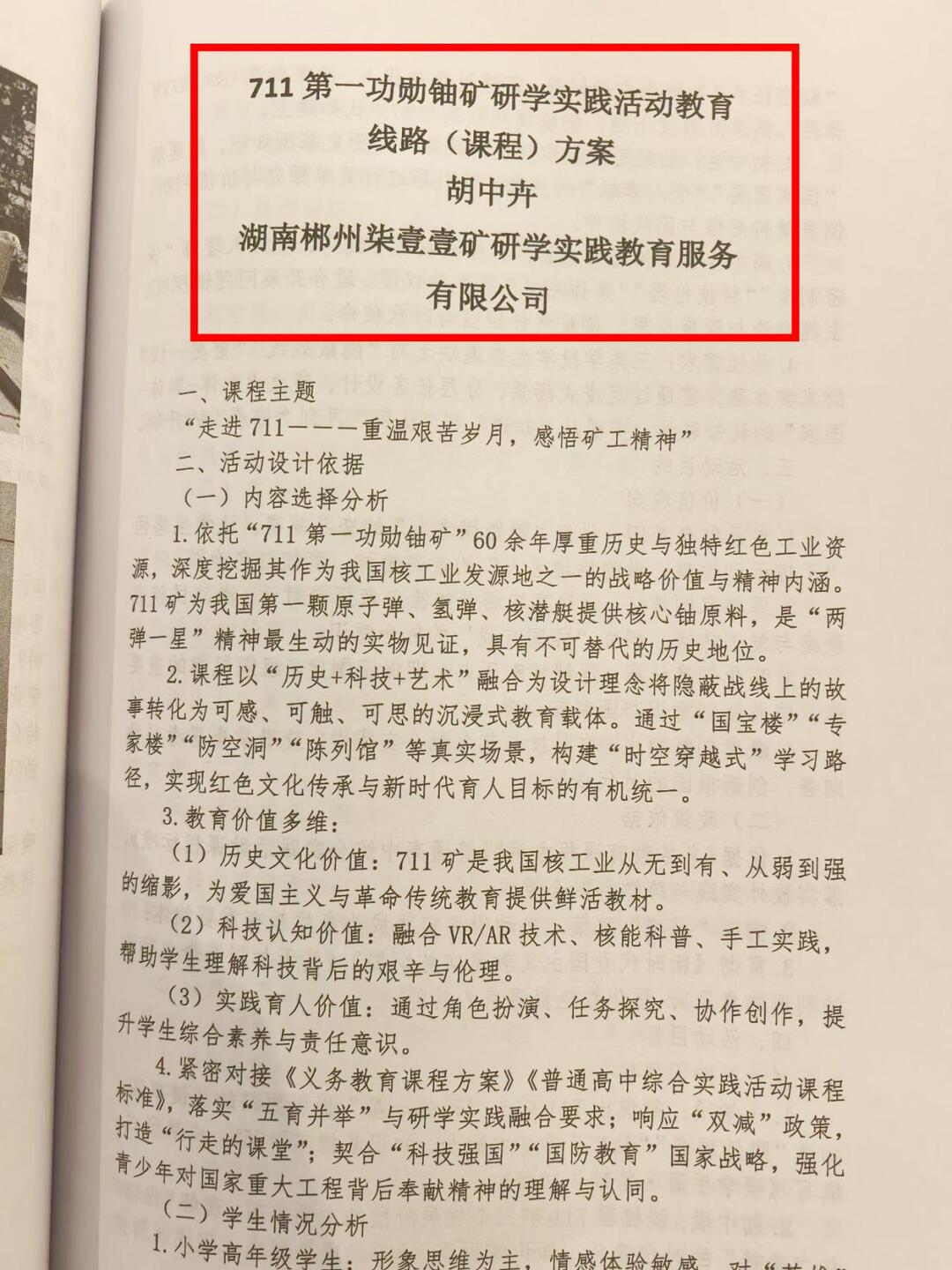 近日,从北京昌平传来喜讯——湖南郴州柒壹壹矿研学实践教育服务有限公司研发的《711第一功勋铀矿研学实践活动教育线路(课程)方案》,在2025年“宫校企行 产教融合”高质量发展大会暨北京昌平研学实践交流会案例征集中,经专家组严格评审,成功入选《优秀案例交流集》,为郴州研学实践教育领域再添一份全国性荣誉。