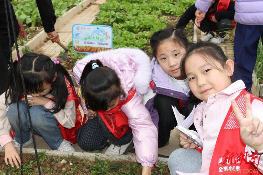 当日,金湾小学耕读园内一片生机勃勃。小记者们手持采访本,穿梭在绿意盎然的菜畦间,亲身参与浇水、除草、采摘等农耕实践环节。在体验劳动过程的同时,他们还采访了正在耕读园内劳作的同学和老师,用笔和镜头记录下这一特色劳动教育基地的点点滴滴。