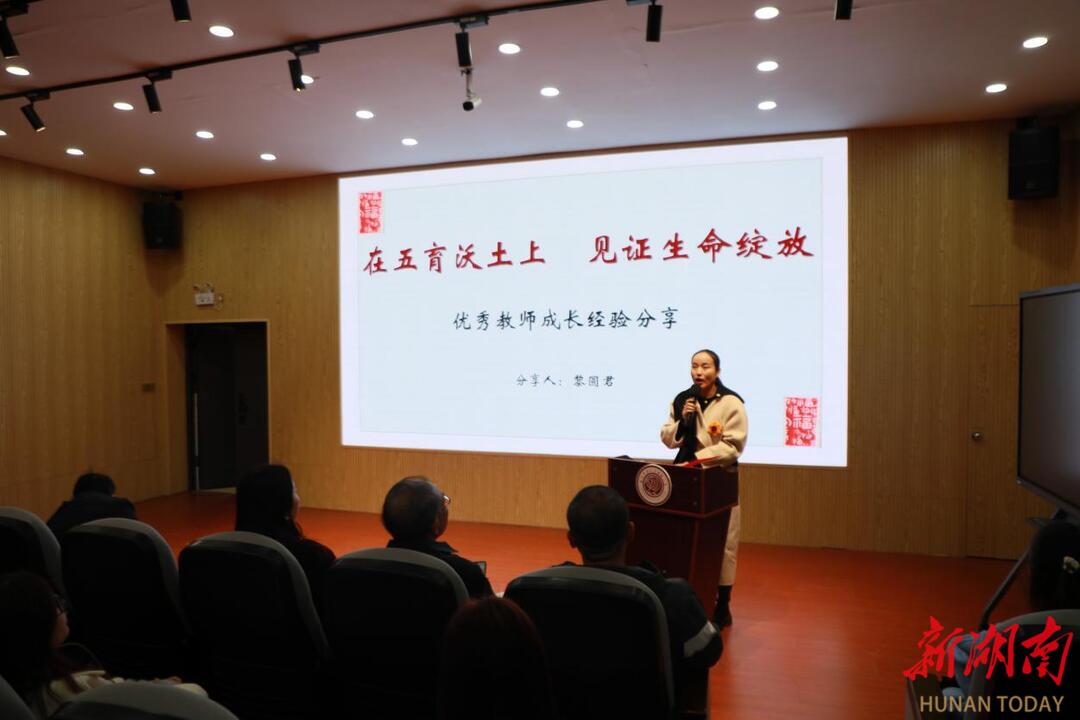 教师代表黎圆君以“在五育沃土上,见证生命绽放”为主题,分享了个人借助校本研修实现专业成长的生动经历。她以劳动教育从“形式开展”走向“实效育人”、非遗从“进校园”到“入心灵”的转变为例,展现了在持续研修中实现教育融通、并反哺育人实践的鲜活经验。