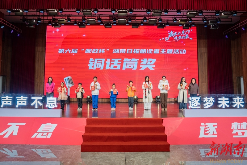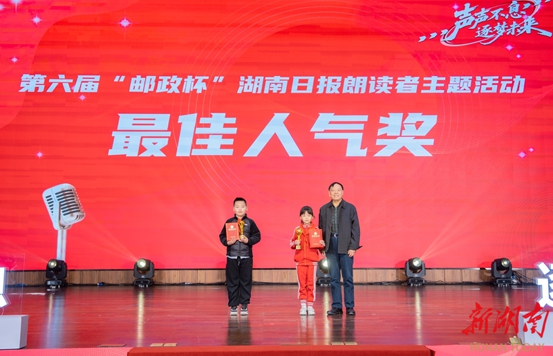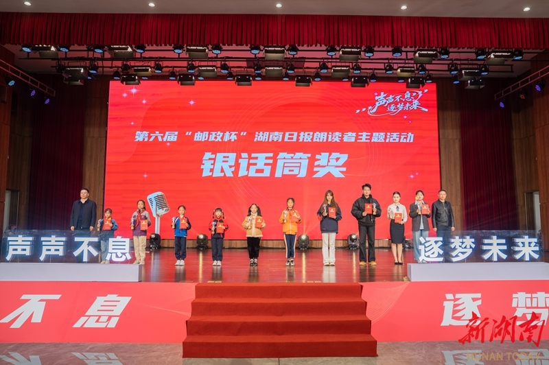 12月5日,现场颁发第六届“邮政杯”湖南日报朗读者主题活动最佳人气奖。当天,第六届“邮政杯”湖南日报朗读者主题活动颁奖典礼暨第七届朗读者活动启动式在长沙市举行。朗读者们用真挚的声音讲述时代故事,用青春的语言传递主流价值,用热忱的表达汇聚向上的力量。 湖南日报全媒体记者 李健 摄