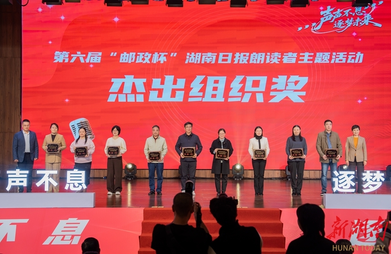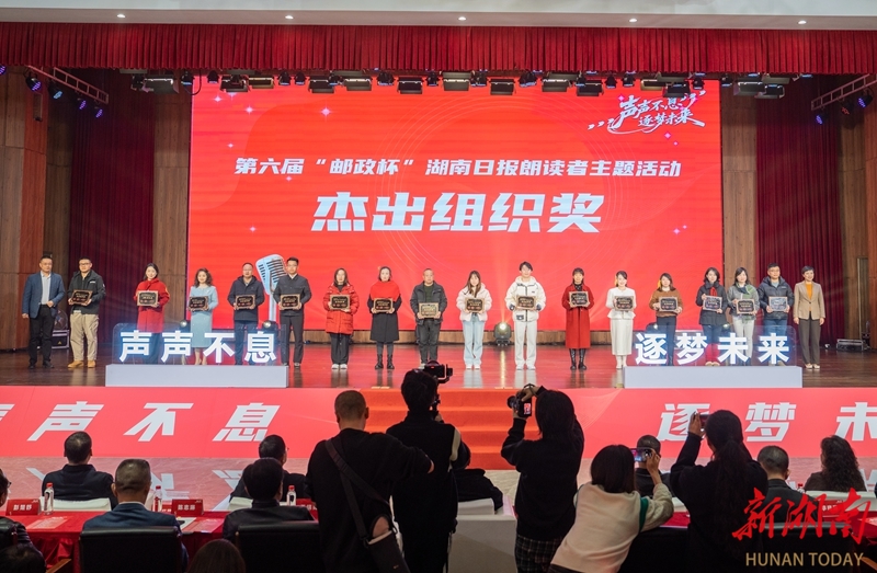 12月5日,现场颁发第六届“邮政杯”湖南日报朗读者主题活动杰出组织奖。当天,第六届“邮政杯”湖南日报朗读者主题活动颁奖典礼暨第七届朗读者活动启动式在长沙市举行。朗读者们用真挚的声音讲述时代故事,用青春的语言传递主流价值,用热忱的表达汇聚向上的力量。 湖南日报全媒体记者 李健 摄