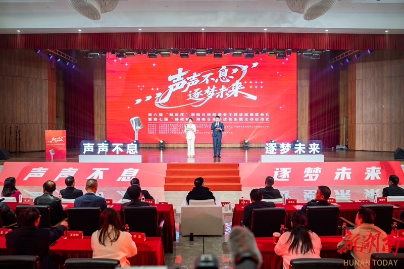 12月5日,第六届“邮政杯”湖南日报朗读者主题活动颁奖典礼暨第七届朗读者活动启动式在长沙市举行。朗读者们用真挚的声音讲述时代故事,用青春的语言传递主流价值,用热忱的表达汇聚向上的力量。 湖南日报全媒体记者 李健 摄