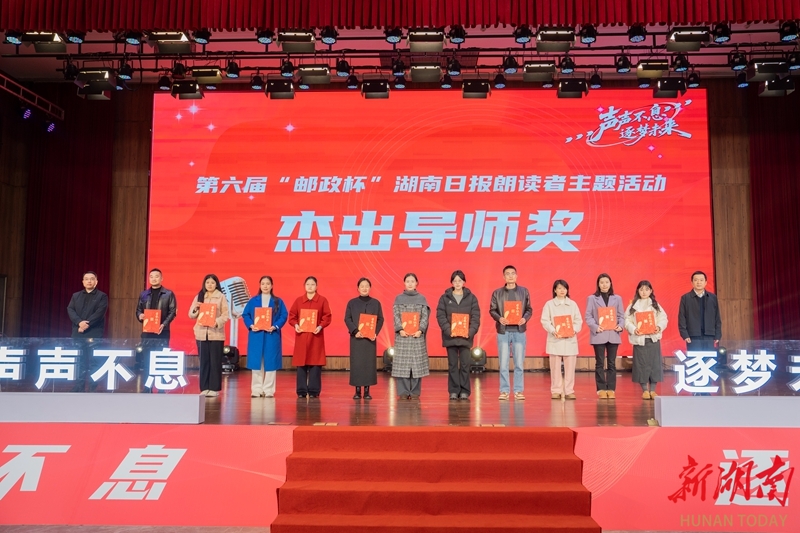 12月5日,现场颁发第六届“邮政杯”湖南日报朗读者主题活动杰出导师奖。当天,第六届“邮政杯”湖南日报朗读者主题活动颁奖典礼暨第七届朗读者活动启动式在长沙市举行。朗读者们用真挚的声音讲述时代故事,用青春的语言传递主流价值,用热忱的表达汇聚向上的力量。 湖南日报全媒体记者 李健 摄