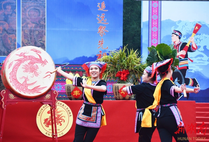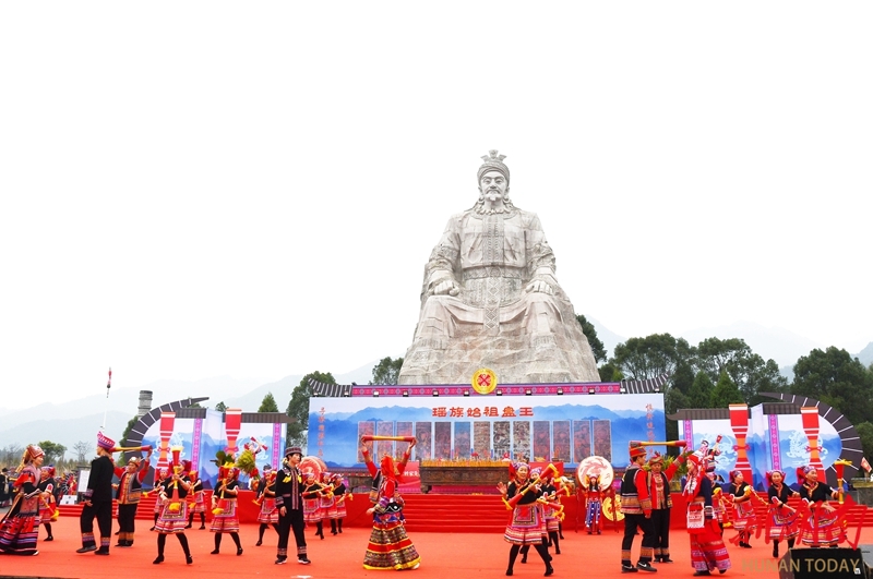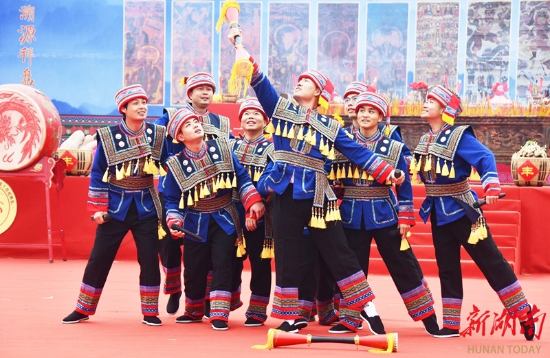 12月5日,江永县千家峒瑶族乡盘王广场,瑶族群众欢聚一堂,载歌载舞欢庆瑶族传统节日盘王节。盘王节是瑶族人民祭祀祖先盘瓠的重大节日,是传承中华瑶族文化与瑶族礼仪的重要活动,每年农历十月十六日举行。 田如瑞 摄(湖南图片库)