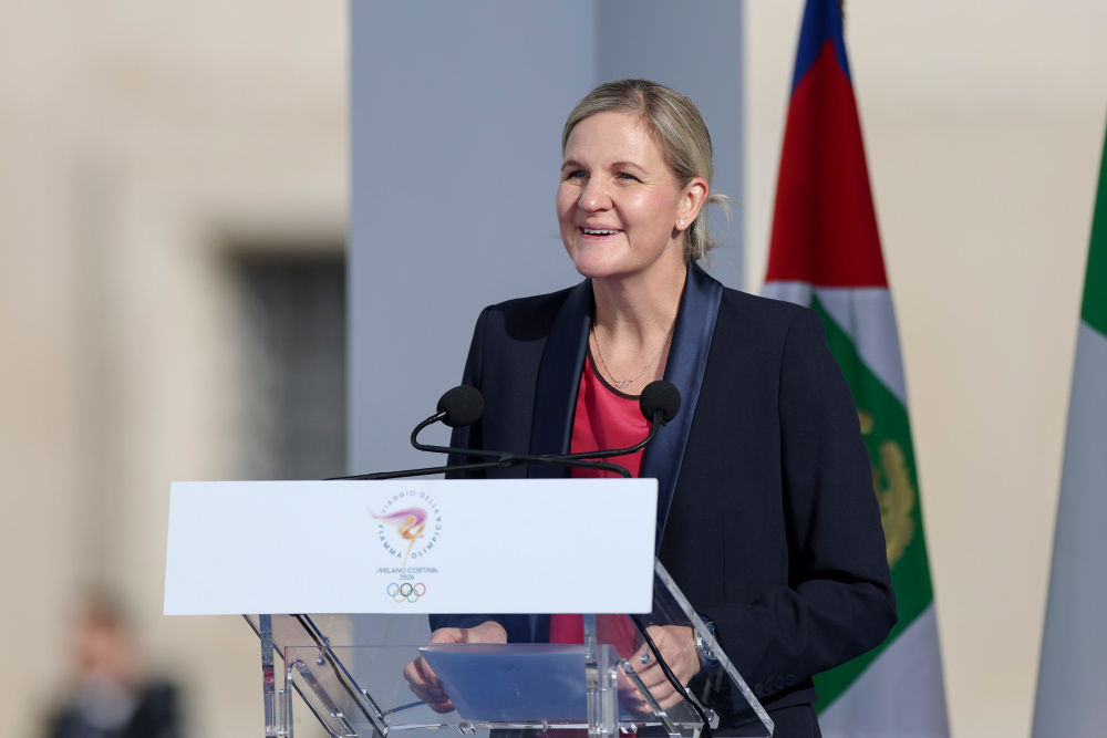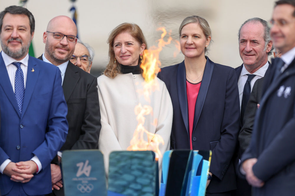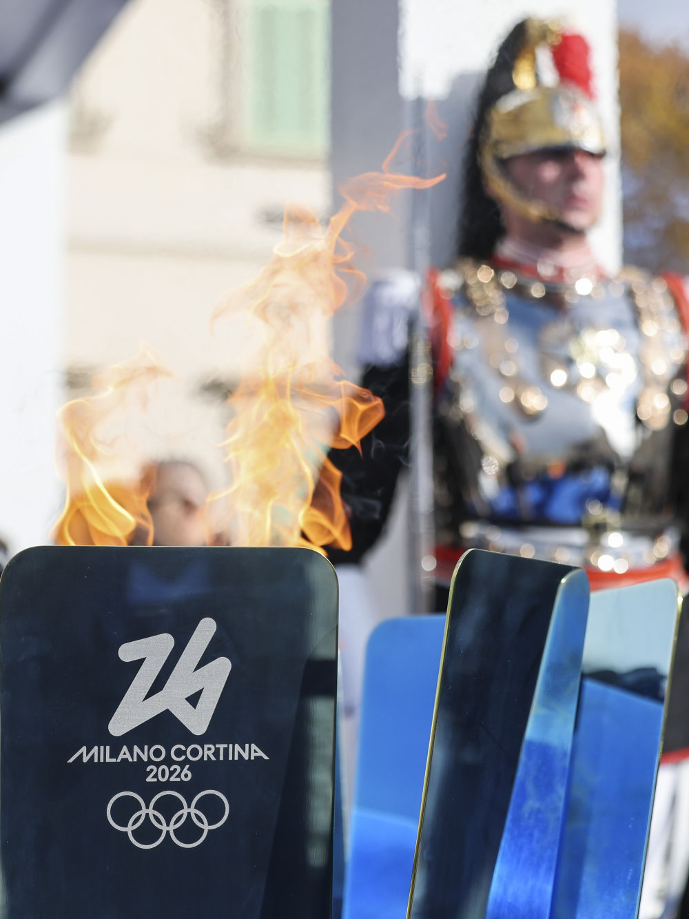 12月5日,2026年米兰-科尔蒂纳冬奥火炬接力庆典火盆点燃仪式在意大利罗马奎里纳莱宫广场举行。