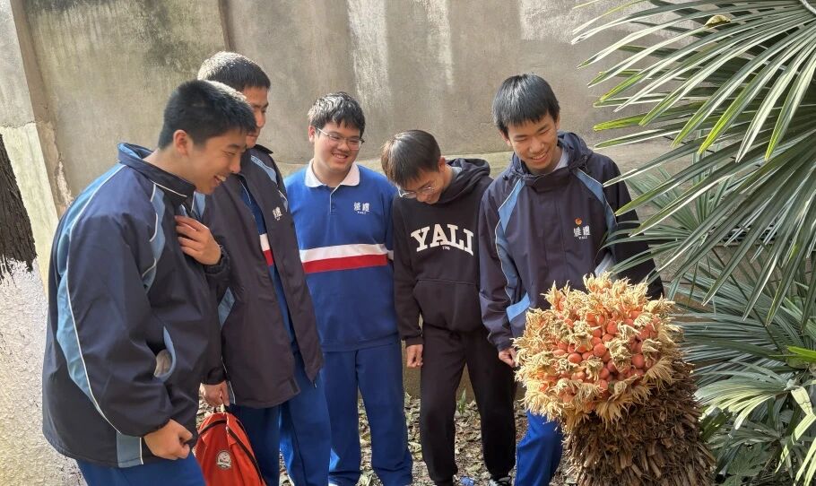 开花的铁树和凤凰蛋,藏在雅礼中学教学楼西侧的静谧角落里,它安静地绽放着,红彤彤的种子丰盈而饱满。