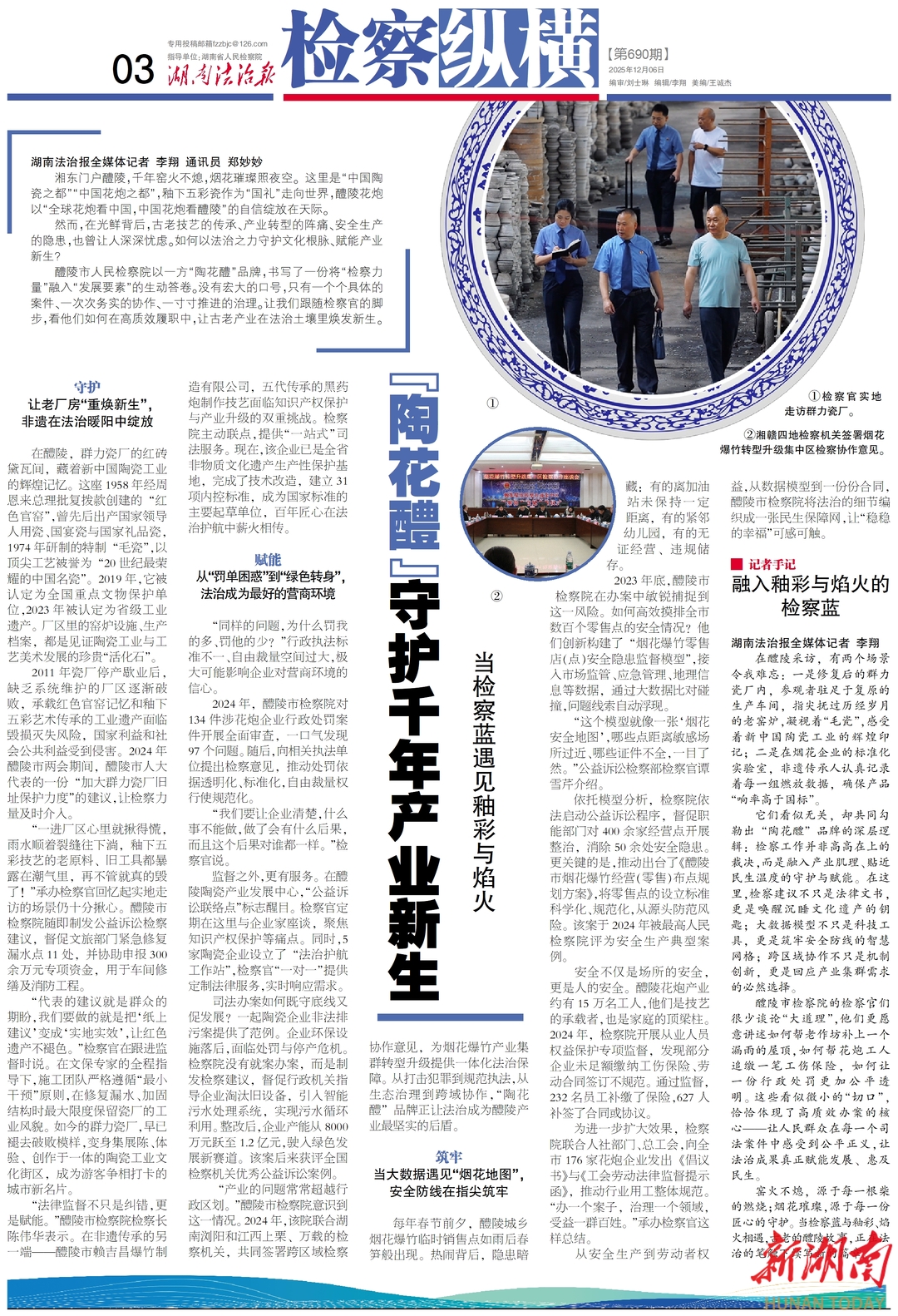 窑火不熄,源于每一根柴的燃烧;烟花璀璨,源于每一份匠心的守护。当检察蓝与釉彩、焰火相遇,古老的醴陵故事,正在法治的笔触下续写新的篇章。
