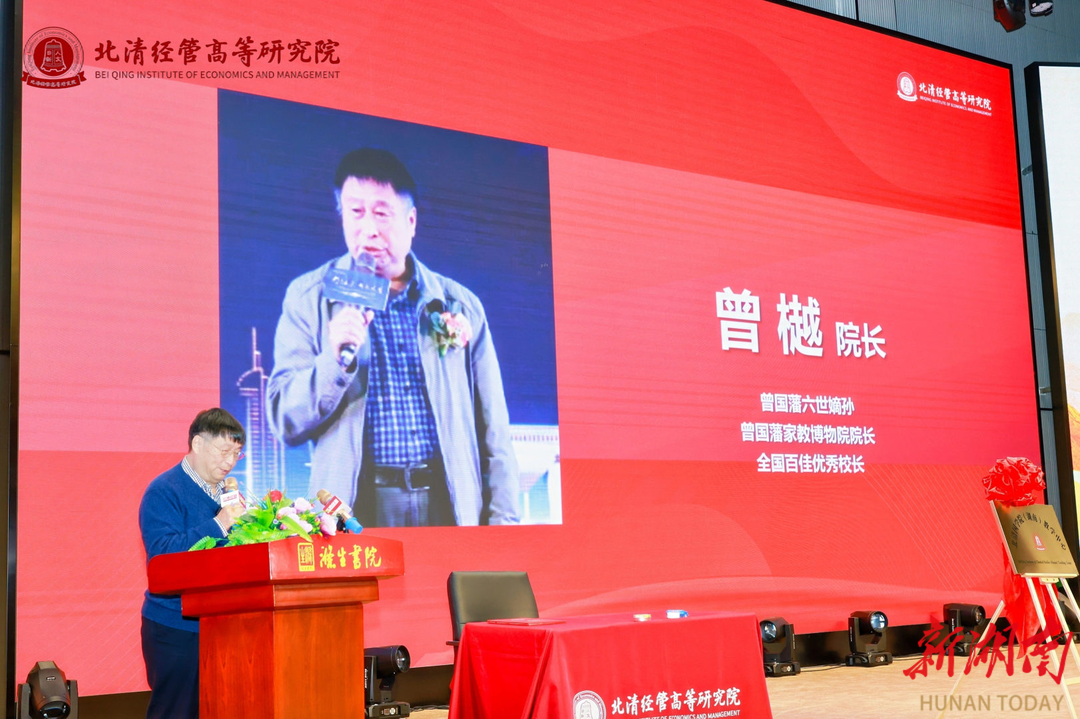 新湖南客户端12月6日讯(曾庆越)12月6日,北清国学院在湖南曾国藩故里涤生书院举行湖南教学中心揭牌仪式,正式聘请曾国藩第六代嫡孙曾樾先生为名誉院长。北清国学商业领袖国学研习社百余名企业家学员齐聚现场,共同见证这一盛事。