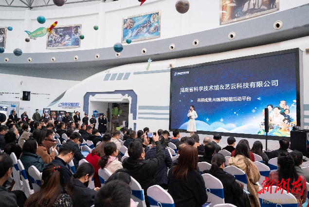 为直观展示“科技赋能科普”的实践成果,活动特设了创新产品发布会环节。华声在线股份有限公司、湖南快乐阳光互动娱乐传媒有限公司(芒果TV)、艺云科技有限公司、北京筑邦建筑装饰工程有限公司、爱不神秘科技(北京)有限公司、上海睿宏文化传播有限公司六家代表性企业依次发布了其与省科技馆联合研发的科普创新产品与解决方案,涵盖了融媒体传播、AI教育应用、数字文化体验、智慧空间构建、护眼显示技术等多个前沿方向,展现了联合体强大的“产学研用”一体化实力与广阔前景。