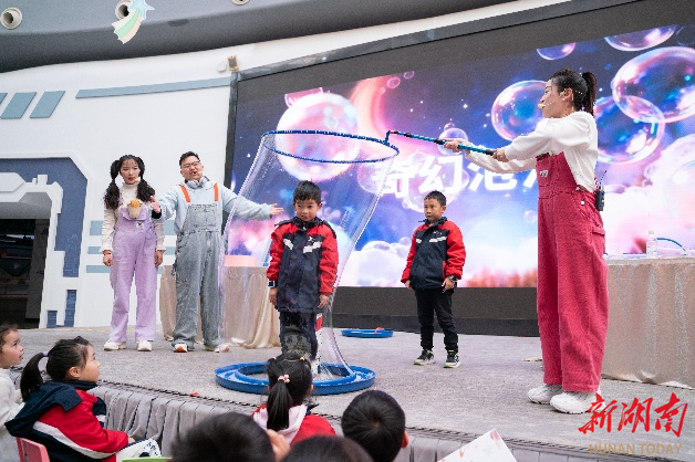 活动的另一大亮点是“科学家故事众创空间”的首场展演。来自枫树山悦东方小学的同学们带来了创意情景剧《小麦的世界》,西雅博才小学的孩子们朗诵了致敬“两弹一星”元勋孙家栋的诗歌《骑着自行车上月球》,以及省科技馆带来的互动科普表演《泡泡秀》,三个节目通过情景剧、朗诵、科普表演等多元形式,生动演绎了科学家精神,展现了青少年的科学素养与创新活力,赢得了现场阵阵掌声。
