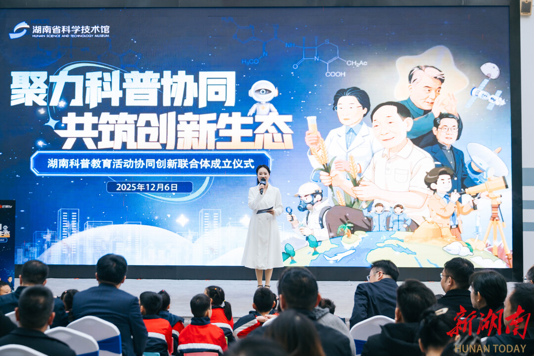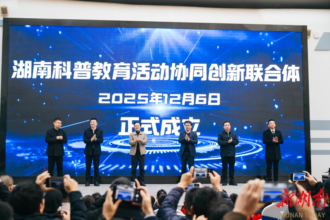 新湖南客户端12月6日讯(通讯员 黄蓉)12月6日上午,湖南科普教育活动协同创新联合体成立仪式在湖南省科技馆举行。该联合体的成立旨在响应国家加强科学普及与科技创新协同发展的号召,整合社会优质资源,共同探索科普教育协同创新新模式。联合体由省科协、省教育厅、省科技厅和省文旅厅担任指导单位,由湖南师范大学、湖南工程学院、湖南超算长沙中心、华声在线股份有限公司等18家来自科普场馆、高校、科研院所、学会(协会、研究会)、中小学校、文化及科技企业等领域的单位联合发起,目前已吸纳首批140余家单位为成员。成立仪式上,全体成员单位代表齐聚一堂,共同见证了这一湖南科普教育领域的里程碑事件。
