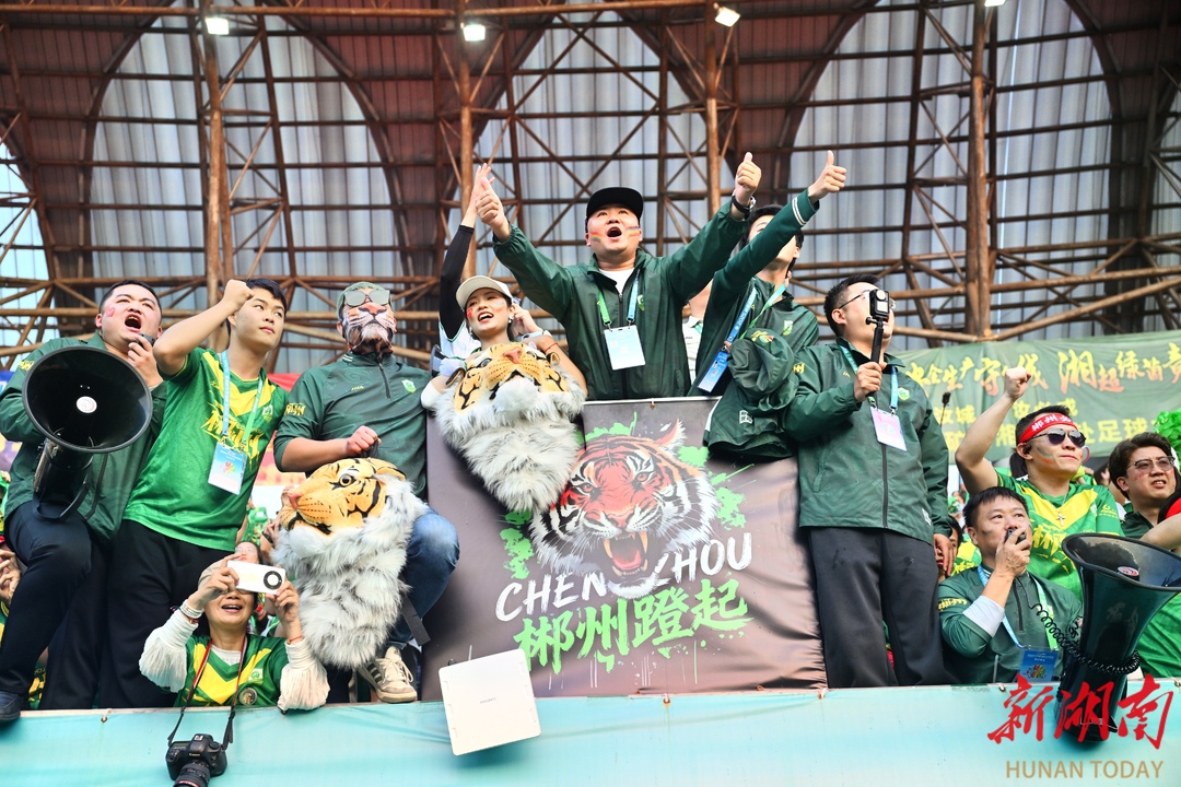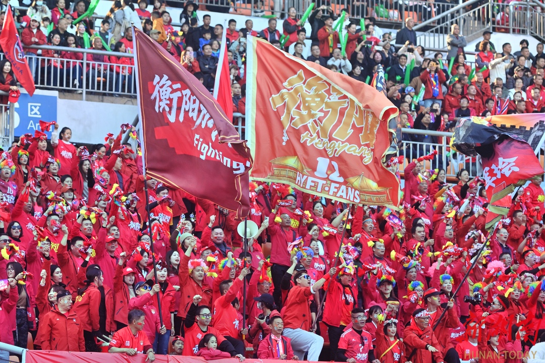 12月6日,球迷在加油助威。当天,2025湘超联赛第十三轮比赛,郴州队主场对阵衡阳队,最终以3:1完胜对手,一起携手挺进八强淘汰赛。湖南日报全媒体记者 郭立亮 摄