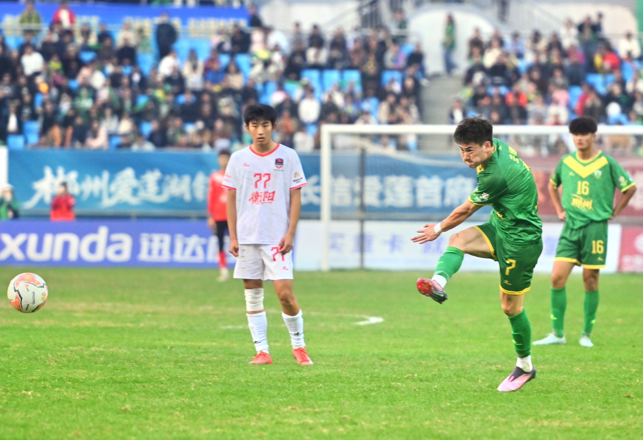 12月6日,2025湘超联赛第十三轮比赛,郴州队主场对阵衡阳队,最终以3:1完胜对手,一起携手挺进八强淘汰赛。湖南日报全媒体记者 郭立亮 摄