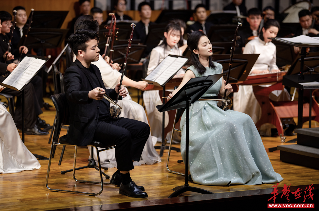 双二胡与乐队作品《楚颂》将音乐会推向高潮。乐曲以悲壮激昂的旋律,再现楚霸王项羽与虞姬的传奇故事,二胡与乐队的深情对话,诠释深植于中华民族血脉中的英勇、忠贞与气节。