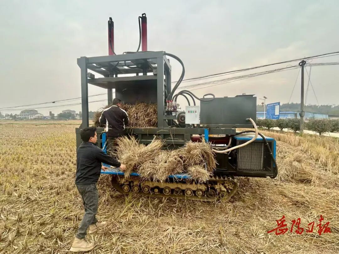 初冬,本是农闲时节。但在临湘市聂市镇的田间,临湘市召丰水稻种植专业合作社负责人张兵驹却依旧忙碌。他正调试着一台模样特别的设备——那是他自研的“移动式秸秆打包机”。