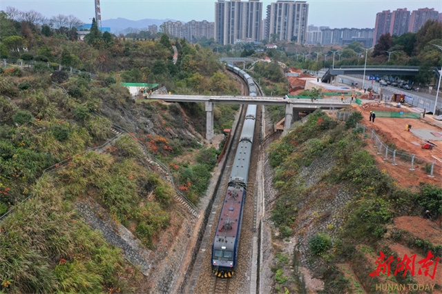 Recently, a pedestrian overpass crossing Hongxing North Road and the Jiaozuo-Liuzhou Railway, along with its supporting facilities, is in the final stage of construction. The overpass connects Longping Botanical Garden with Yingfeng Park in Huaihua City. Upon completion, the project will significantly shorten travel time between the two parks, making it more convenient for residents to enjoy leisure time. (Photo/Chai Junlin)