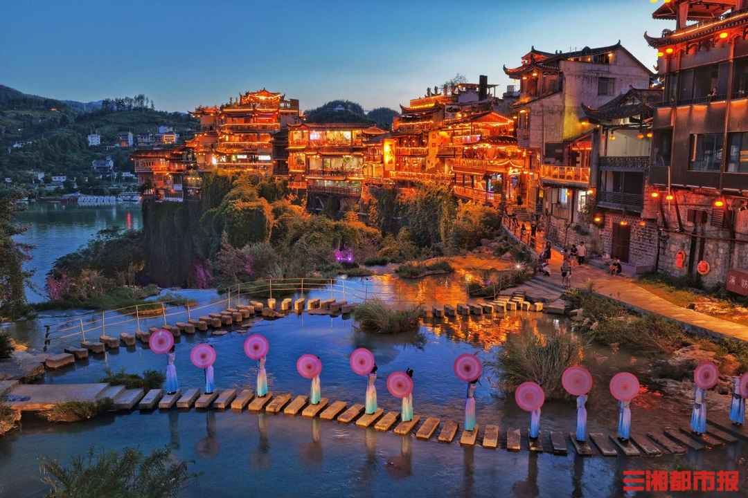如今的芙蓉镇,夜景璀璨,进入12月,古镇巷道游人如织,其中大部分是来自国外的游客,景区内特色民宿一房难求。未来,景区将以芙蓉镇为核心枢纽,整合周边30公里内老司城、红石林、猛洞河等优质资源,构建高端旅游线路,形成休闲度假黄金圈,实现“单点出彩”向“全域开花”跨越。