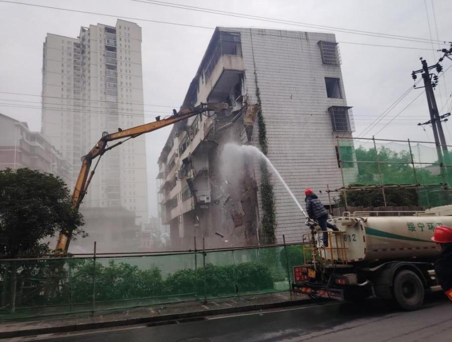 湖南日报·新湖南客户端12月8日讯(通讯员 刘兆明 杨宏宁)近日,绥宁县虾子溪桥头,临近幸福里小区附近一老旧小区“挖掘机、推土机等大型机械正在轰鸣作响,洒水车往拆除房屋上面浇水,一座座老房屋有序轰然倒下....。”这是原公路局家属楼拆除现场,工人们正在紧张忙碌者。