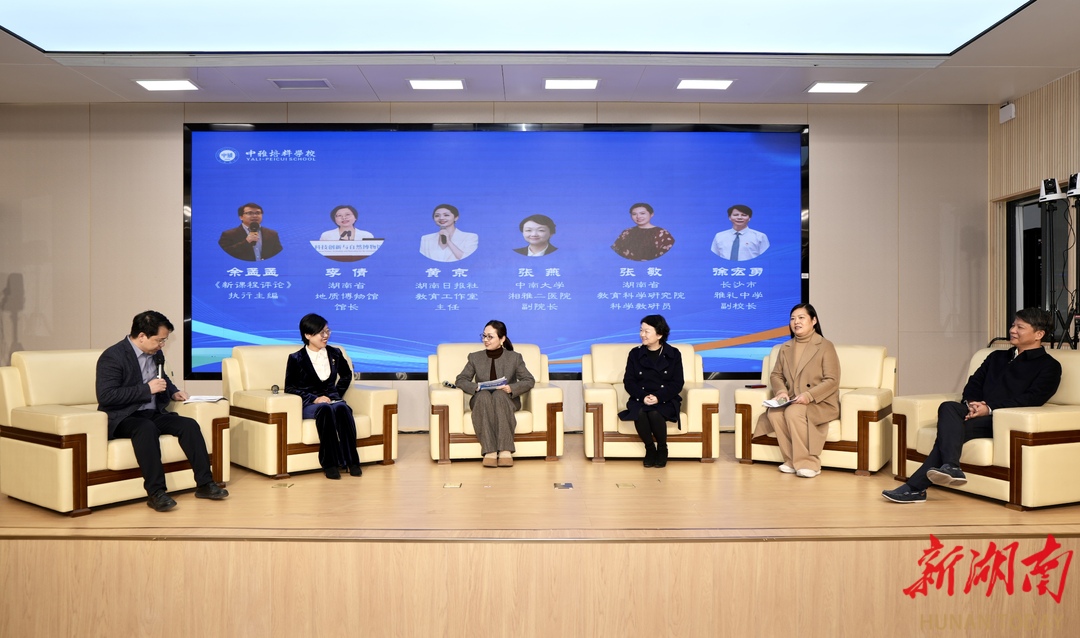 湖南日报·新湖南客户端12月9日讯(通讯员 江河 汤楚云)12月3日,首届湖南科技教育创新融合发展论坛暨第二届“馆校共建”研讨活动在长沙市中雅培粹学校举办。湖南省地质博物馆作为联合主办单位,馆长李倩、副馆长钟琦、科教部部长龚淼应邀出席。李倩馆长作为对话嘉宾,在圆桌对话环节围绕“科技教育协同育人机制建设”主题,与各界代表展开深度交流,共绘协同育人新蓝图。