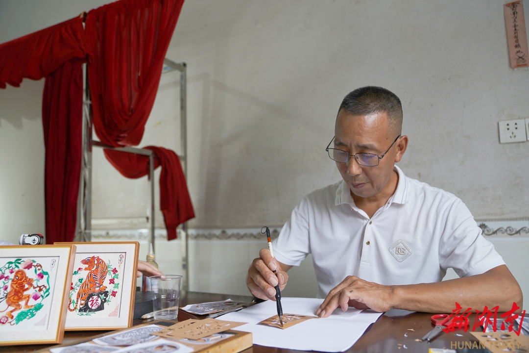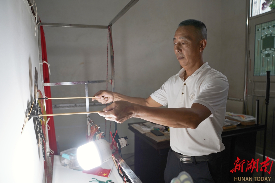 带着几分好奇,我去了趟浏阳,没想到,他家里十分简陋,不大的堂屋里竖着一块皮影布,前面摆着几张长条凳,有人来看时就演一演,没人时,就伏在案头做皮影。
