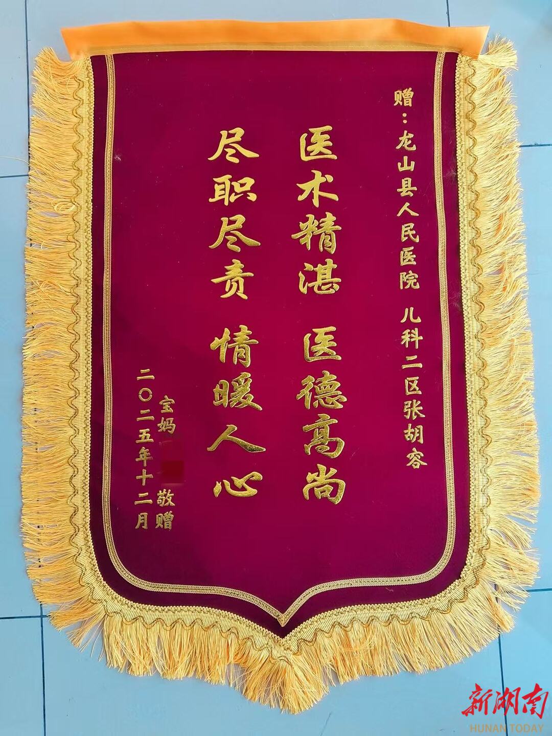 田女士的孩子曾在该院儿科接受治疗。自那之后,每当孩子出现发热、头痛等不适,田女士总会通过社交软件向张胡容医生咨询。“张医生不仅医术好,很快就帮孩子缓解了不适,对我这个新手妈妈更是耐心十足。每次问诊都会细致解释病情,护理上的注意事项也反复叮嘱,那种把孩子当自家娃照顾的温柔,彻底安抚了我当时的焦虑,特别让人安心。”即便后来举家迁往长沙生活,这份信任也从未间断。为表达感激,田女士特意定制锦旗邮寄回龙山,向张医生传递敬意。