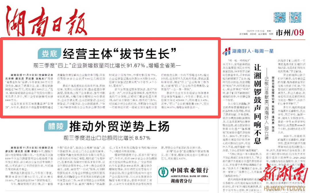 (《湖南日报》报道娄底经营主体“拔节生长”)